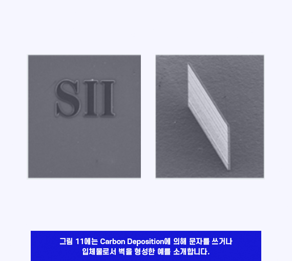 Electron Beam과는 다른 기능으로서 Sample에 Ion Beam을 조사하여 가공할 수 있습니다.
