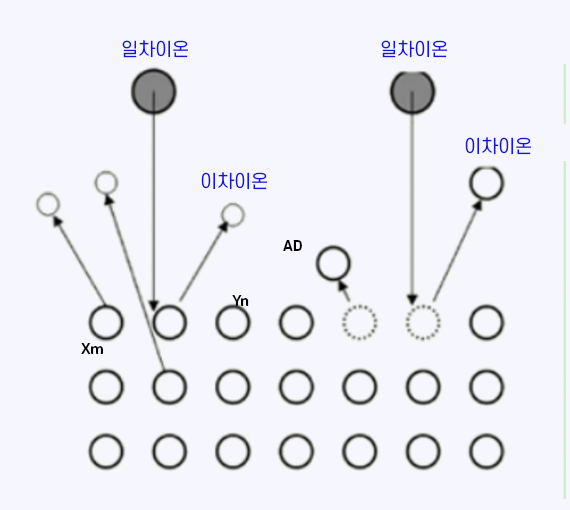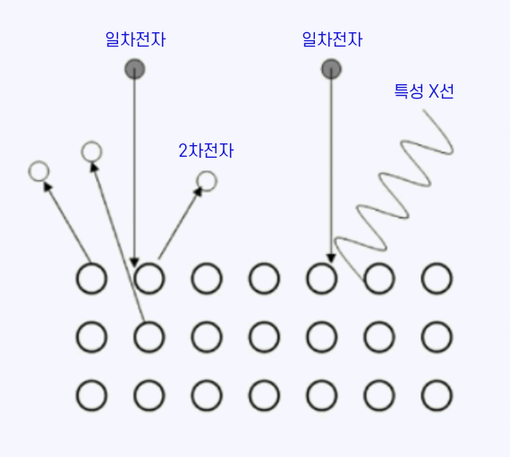 일차 Ion을 Sample에 조사하면 2차 전자가 발생합니다.