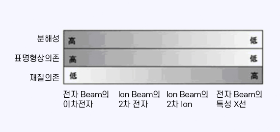 일반적으로 이것들2차 신호의 공간 분해능력과 재질 의존성의 관계는 이하와 같이 됩니다.